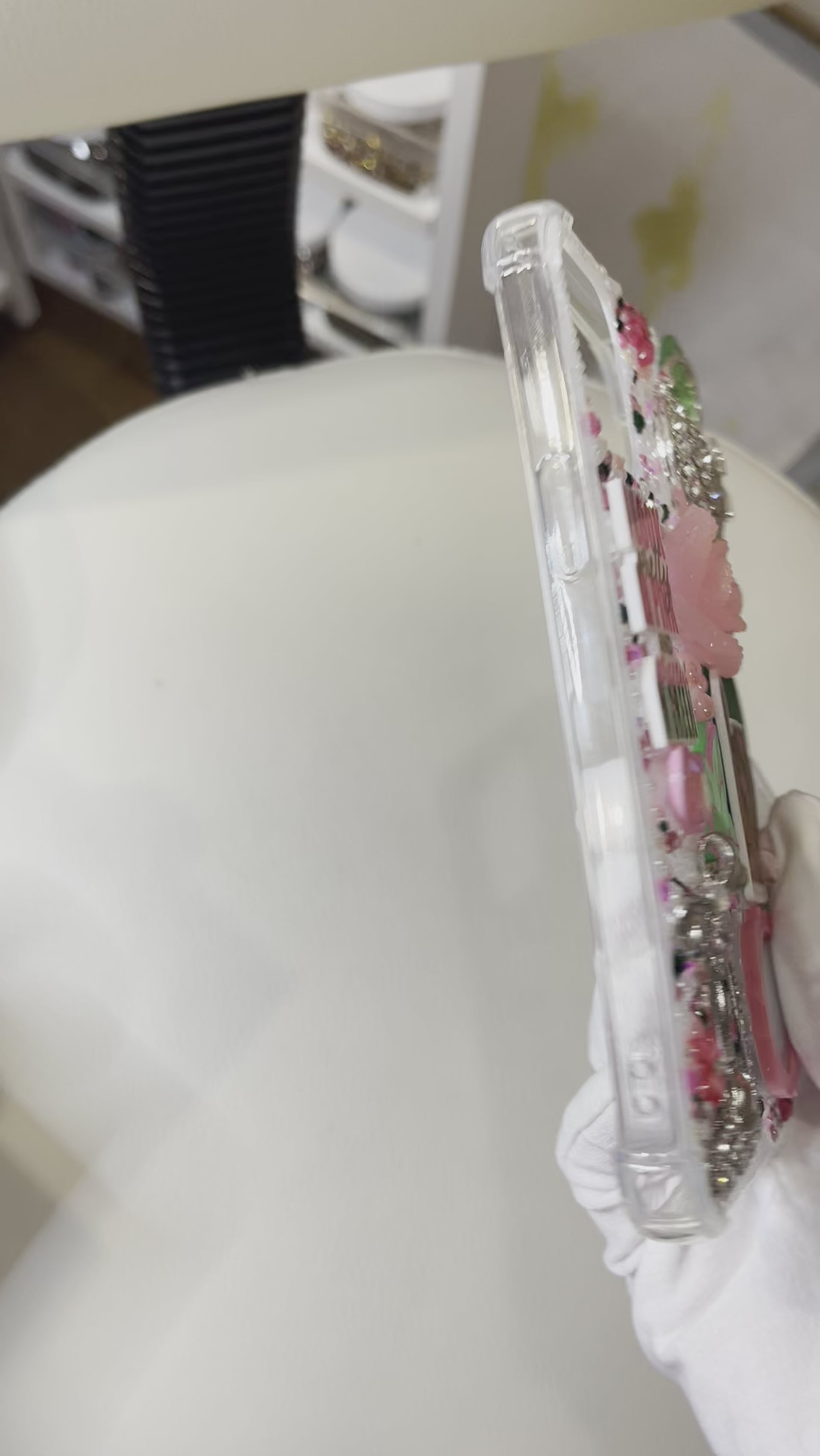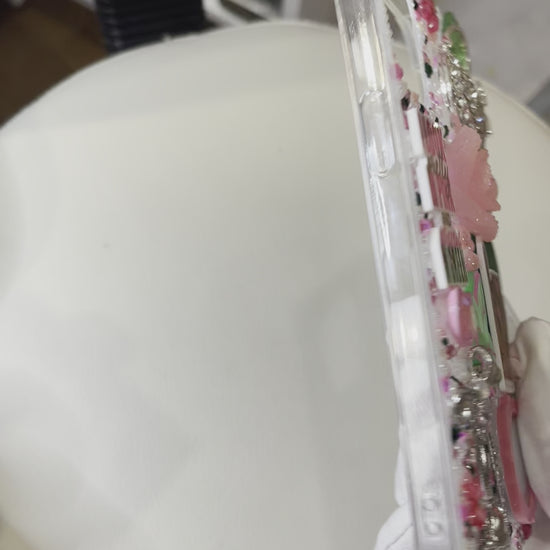 Pretty in Pink and Gorgeous in Green ready to ship phone case with protective bumper guards for the iPhone 12 Pro Max