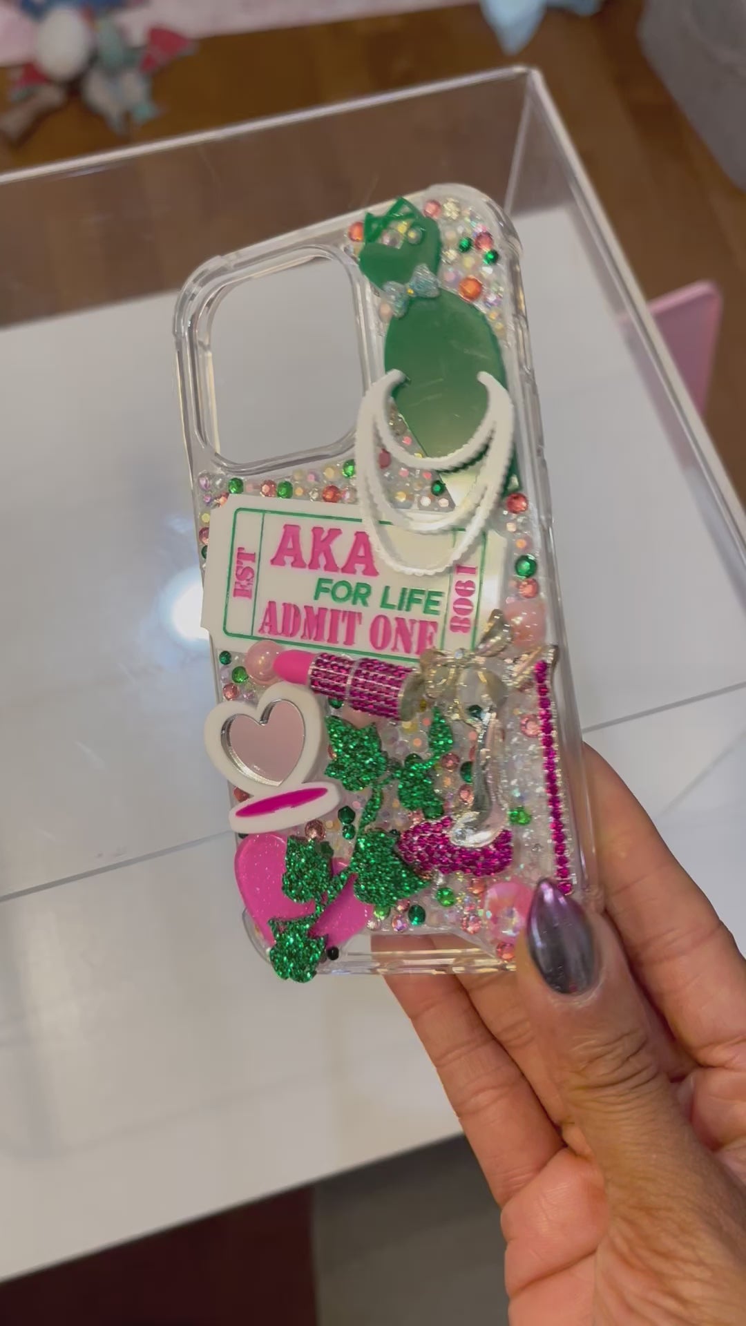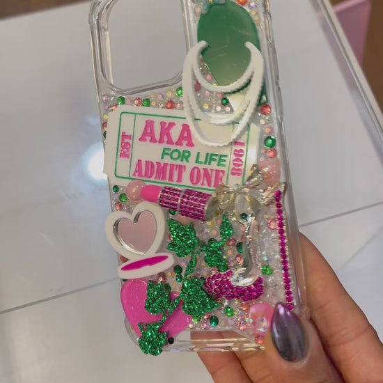 Ready to Ship Admit One Pink and Green Sorority Themed Snap On Phone Case with Protective Bumper Guards for the iPhone 14 Pro